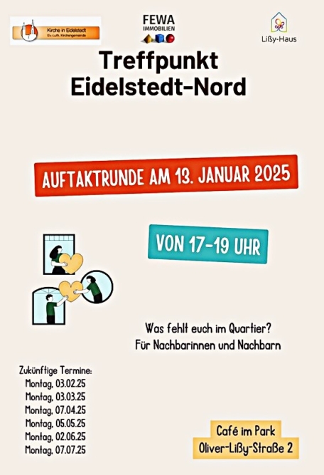 ich möchte herzlich zum ersten Termin des Nachbarschaftstreffs „Treffpunkt Eidelstedt-Nord“ einladen.