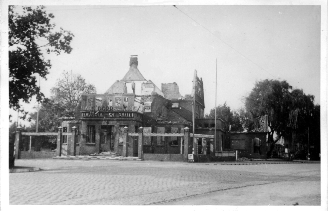 Auch in Eidelstedt wurden damals viele Gebäude zerstört, darunter mehrere Häuser rund um den Eidelstedter Platz – oben das Gasthaus Doppeleiche – und die Schule an der Elbgaustraße, wo sich heute das steeedt befindet.