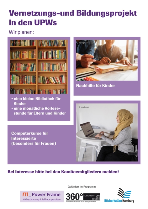 Es wird oft über Menschen in Flüchtlingsunterkünften geredet – selten mit ihnen. Oft wird über ihren Kopf hinweg entschieden – selten entscheiden sie selbst mit. Das war der Plan, die Initiative „m_Power Frame“ zu ändern, in der sich Menschen mit eigenem Migrationshintergrund zu engagieren. Als ersten Schritt stellte m_Power Frame jeweils ein Komitee (Bewohner*innenrat) in den Unterkünften in der Oliver Lißy Straße und im Duvenacker auf die Beine, das die Bewohner*innen stärkt und dafür sorgt, dass sie ihre Belange demokratisch legitimiert formulieren. Hinter m_Power Frame stehen Homayoon Pardis als Projektmanager am Eidelstedter Bürgerhaus und Community Organizerin Anne Busch. Homayoon Pardis stammt aus Afghanistan und lebt seit Anfang 2016 in Hamburg.